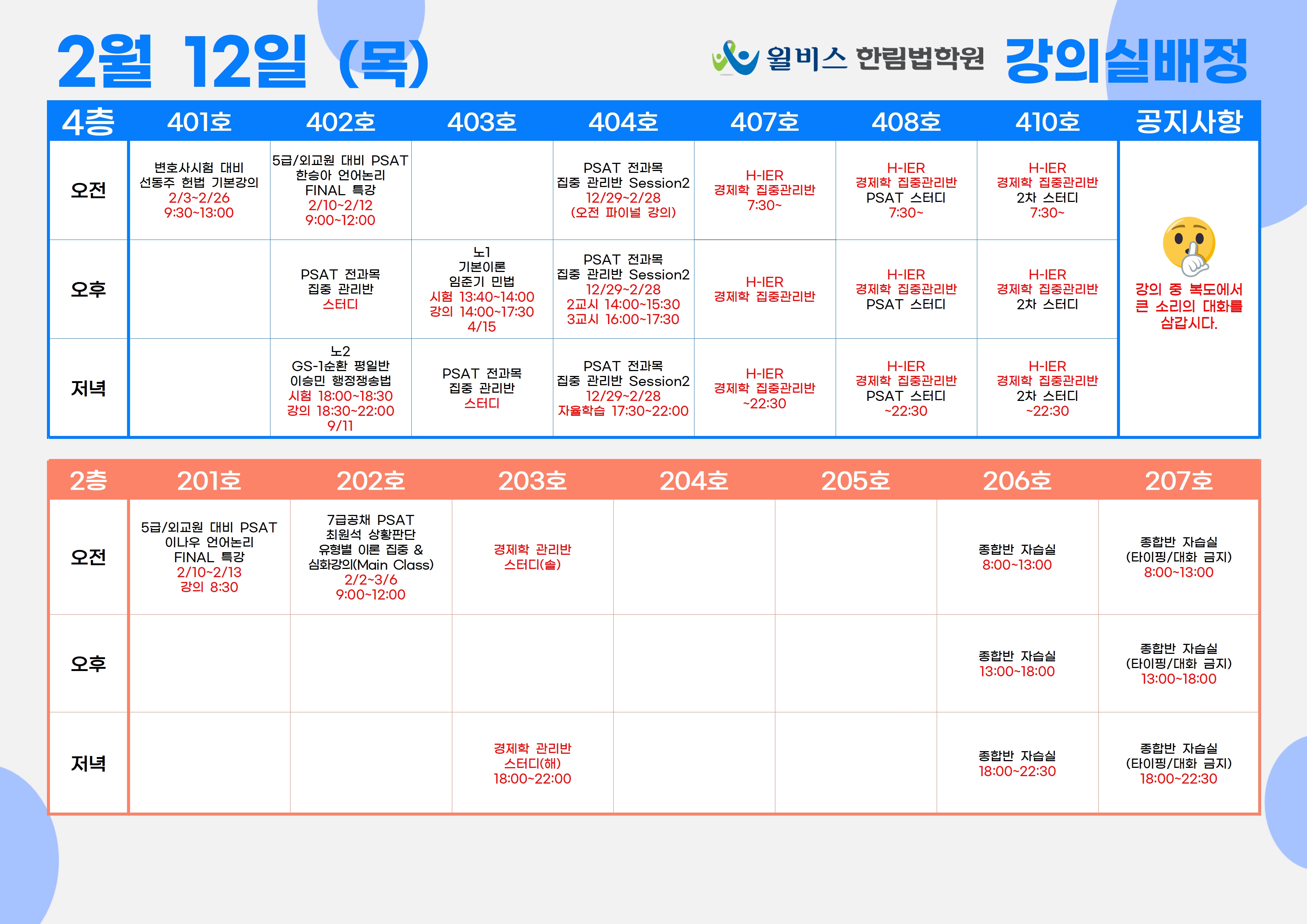 2월 12일(목) 강의실 배정표