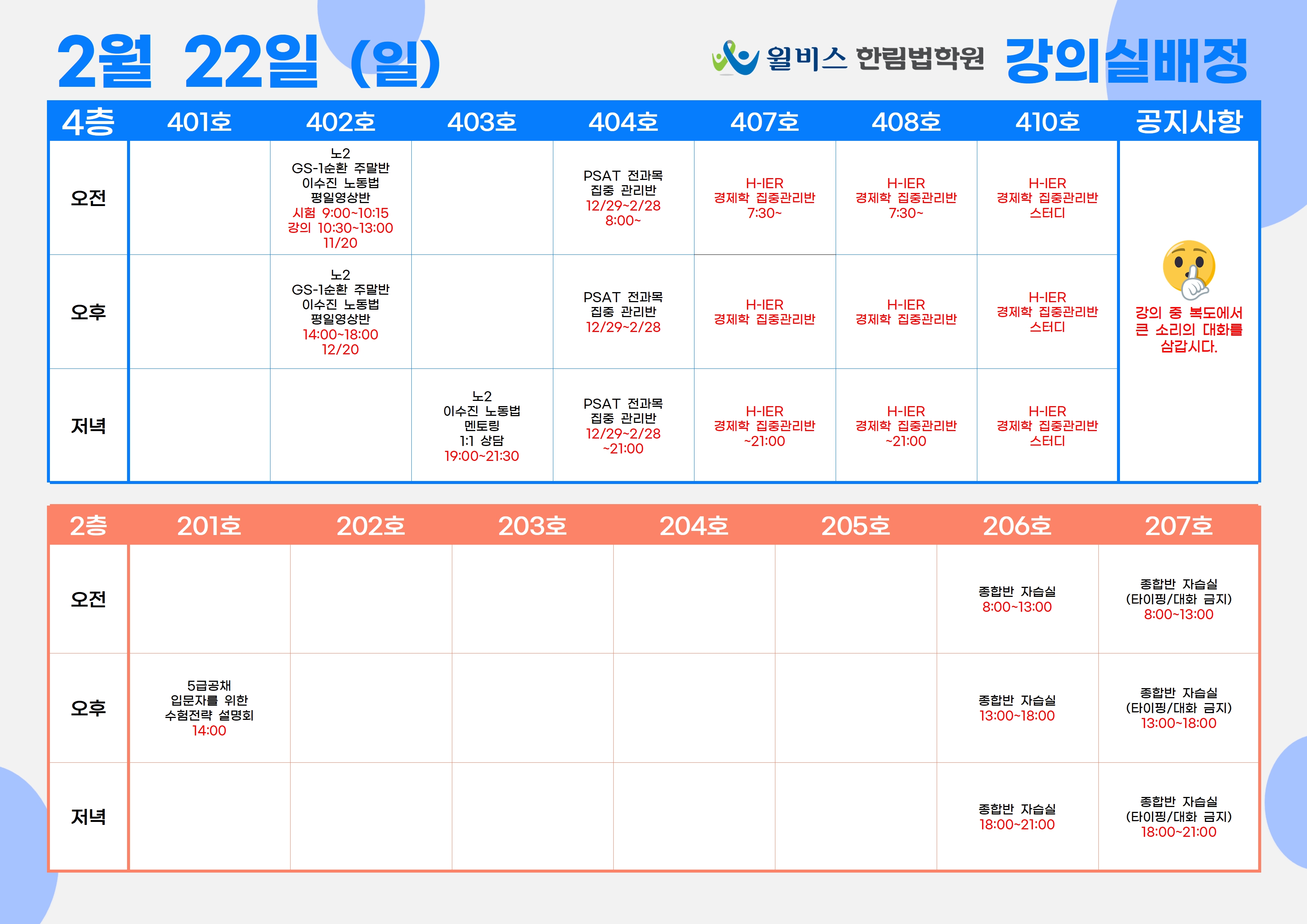 2월 22일(일) 강의실 배정표