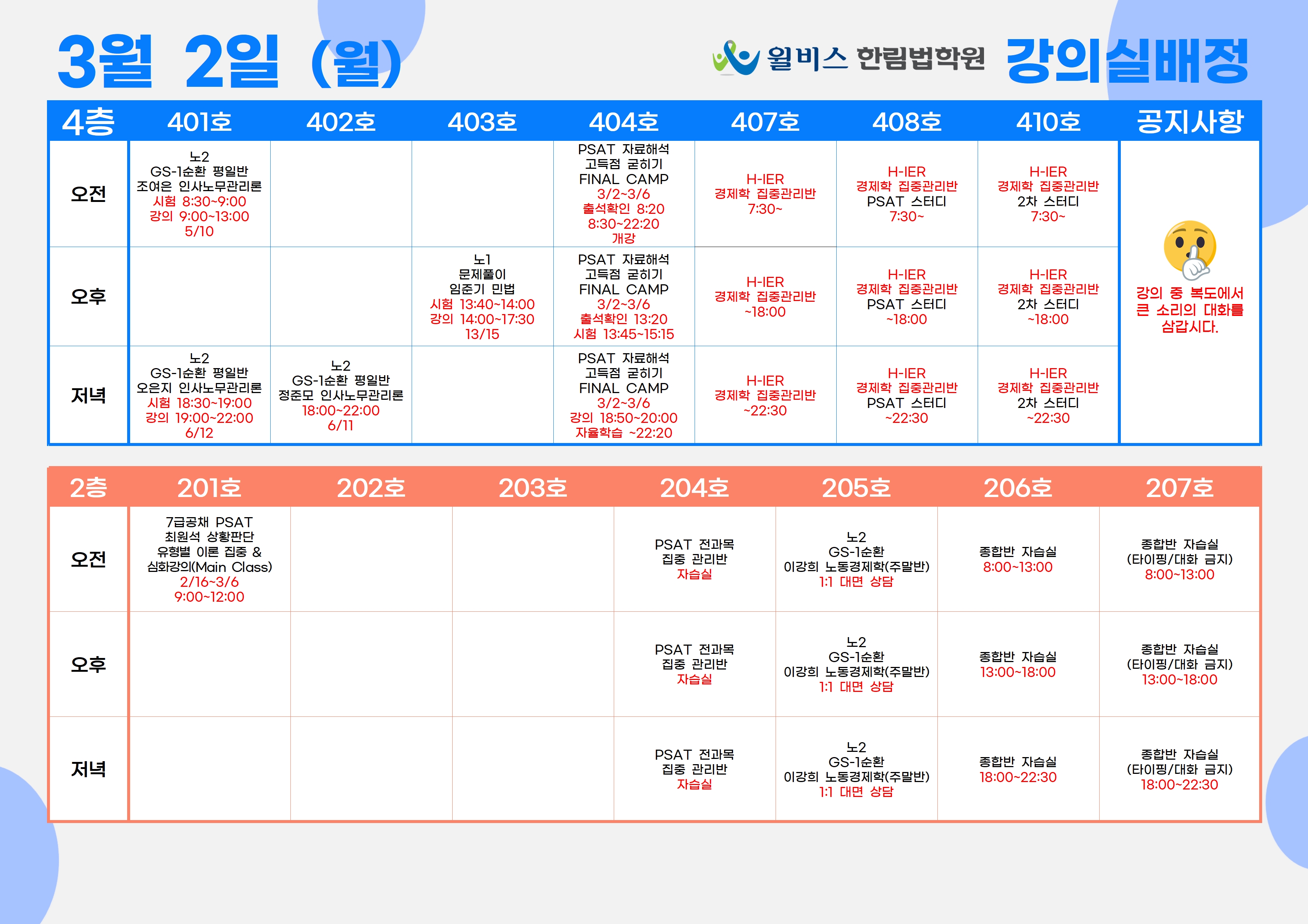 3월 2일(월) 강의실 배정표