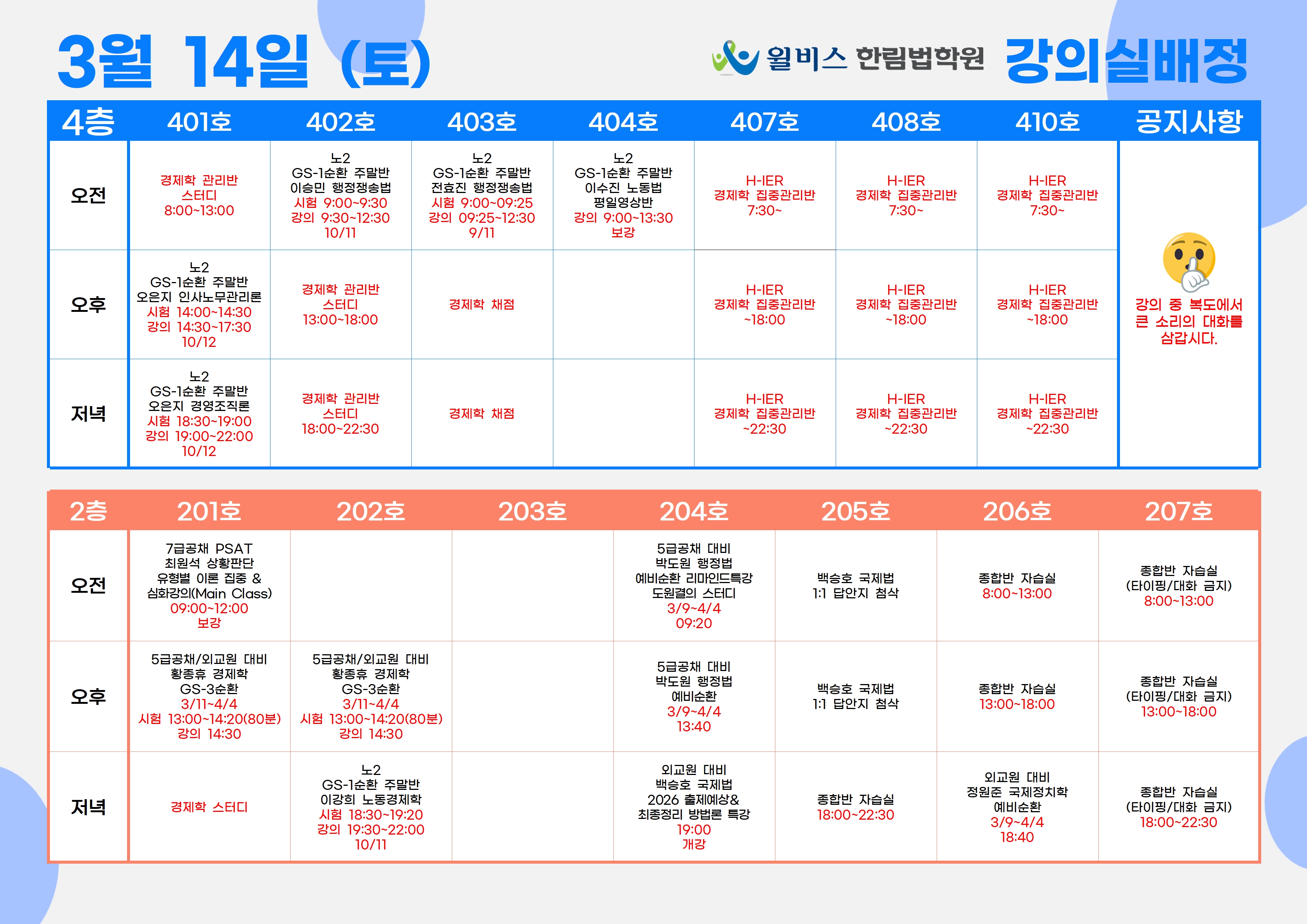 3월 14일(토) 강의실 배정표