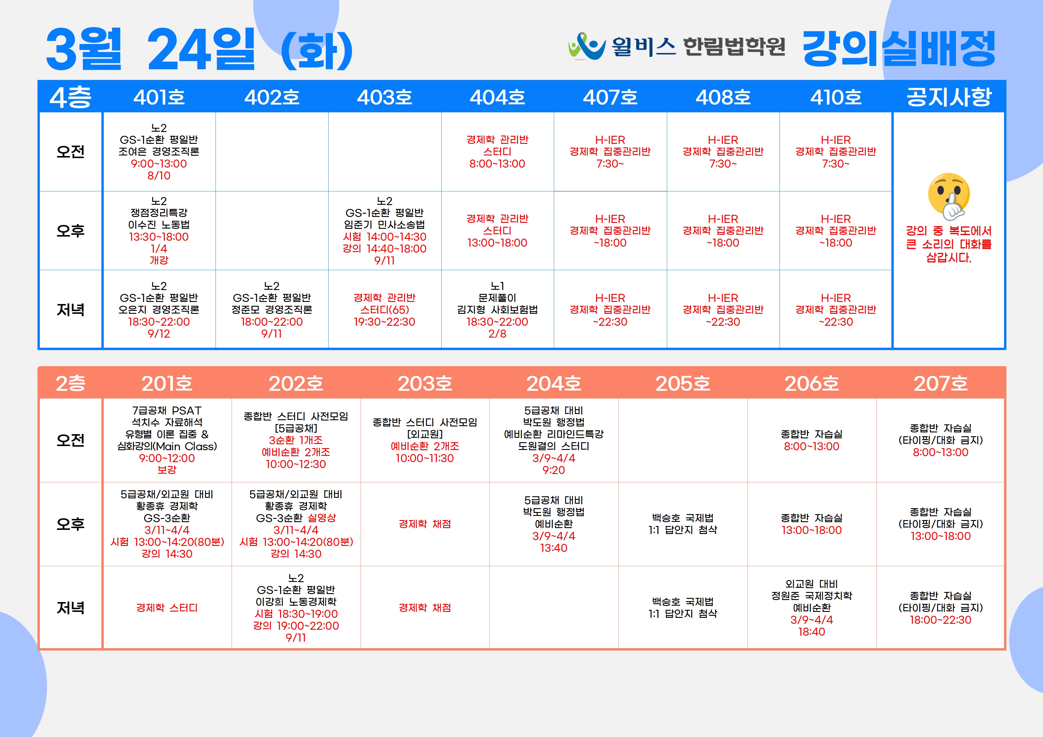 3월 24일(화) 강의실 배정표