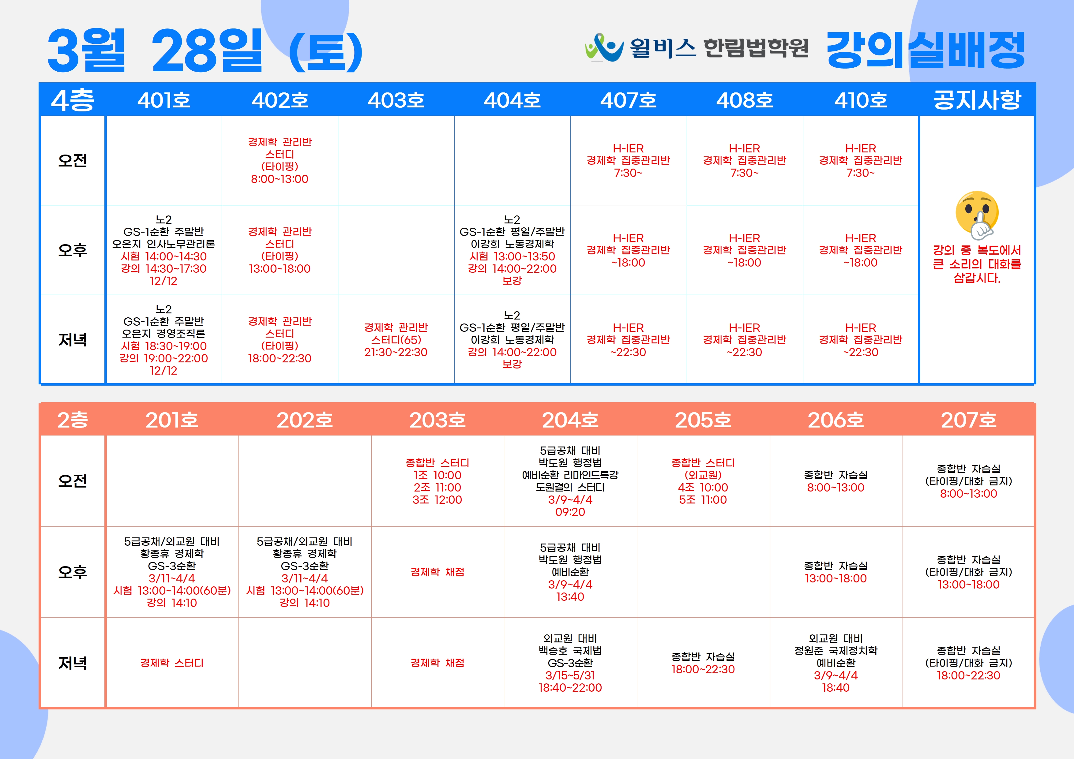 3월 28일(토) 강의실 배정표