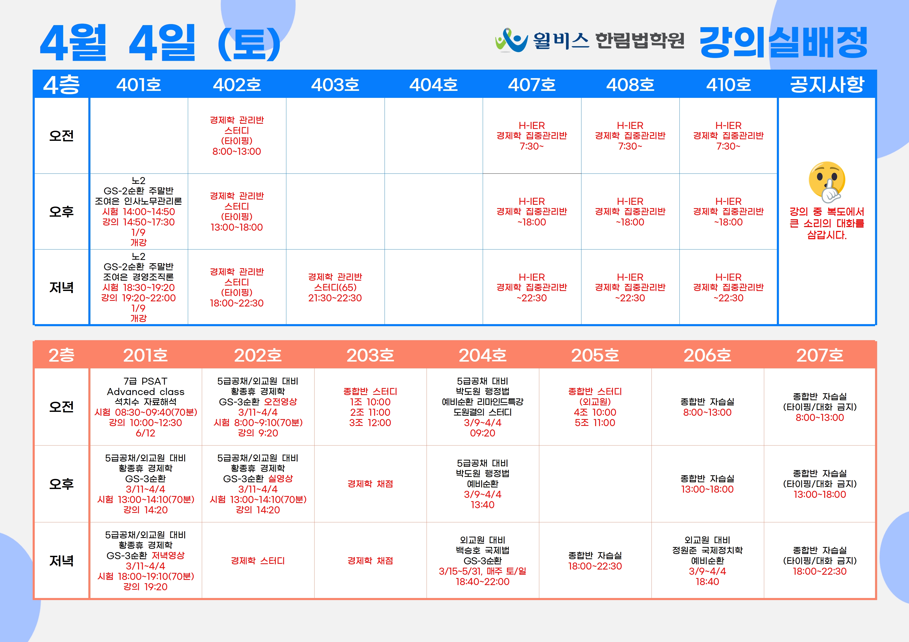 4월 4일(토) 강의실 배정표