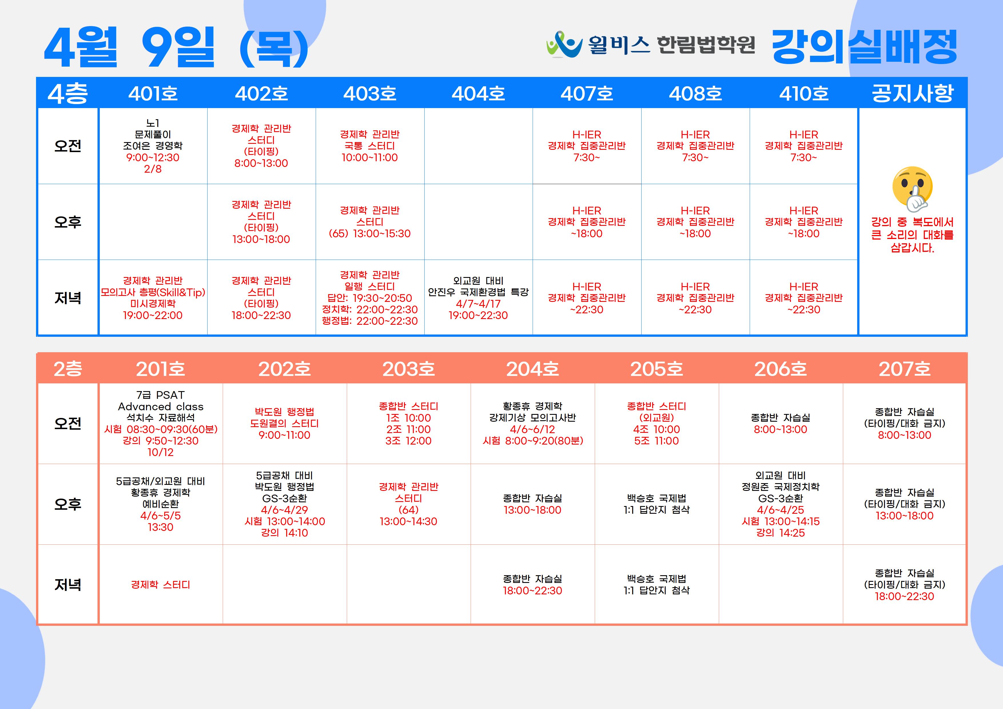 4월 9일(목) 강의실 배정표