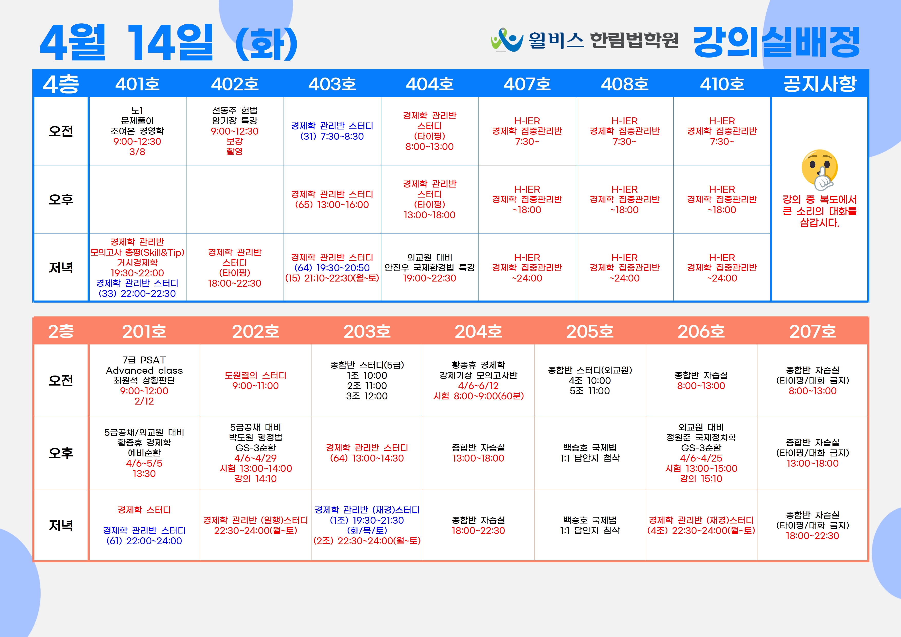 4월 14일(화) 강의실 배정표