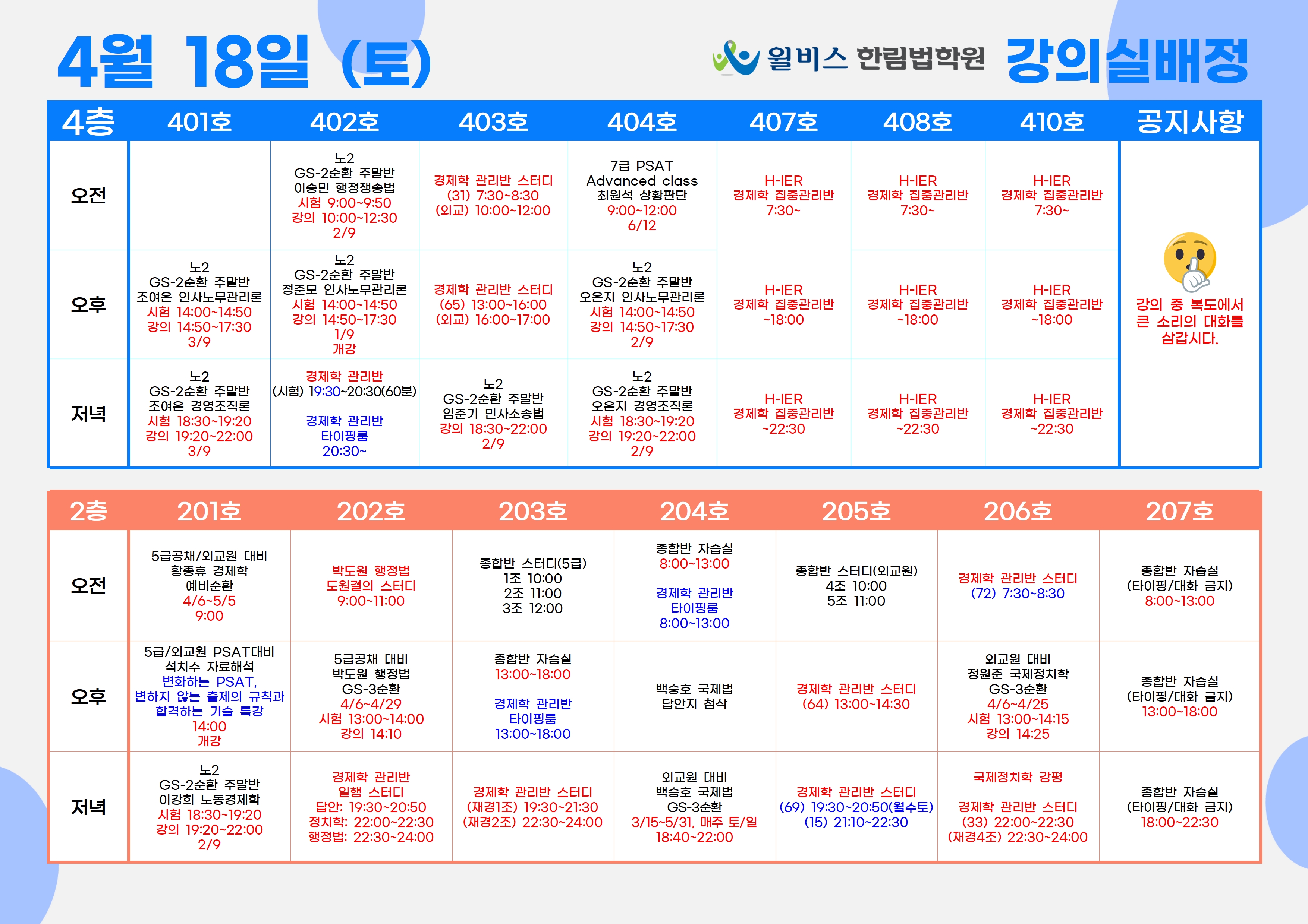 4월 18일(토) 강의실 배정표