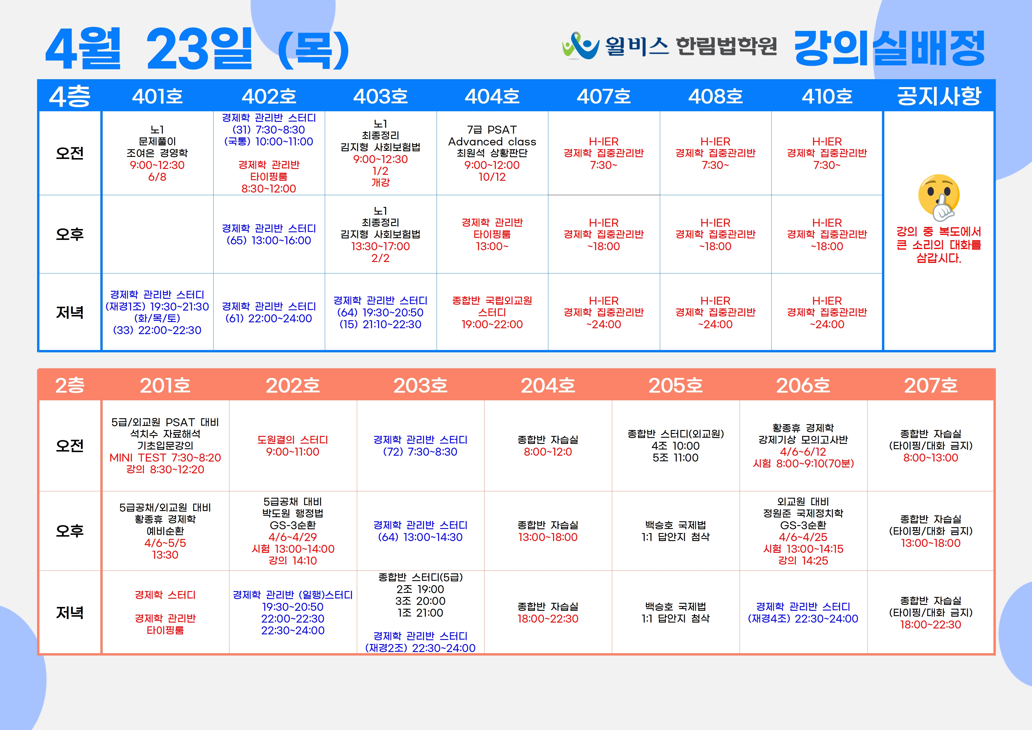 4월 23일(목) 강의실 배정표