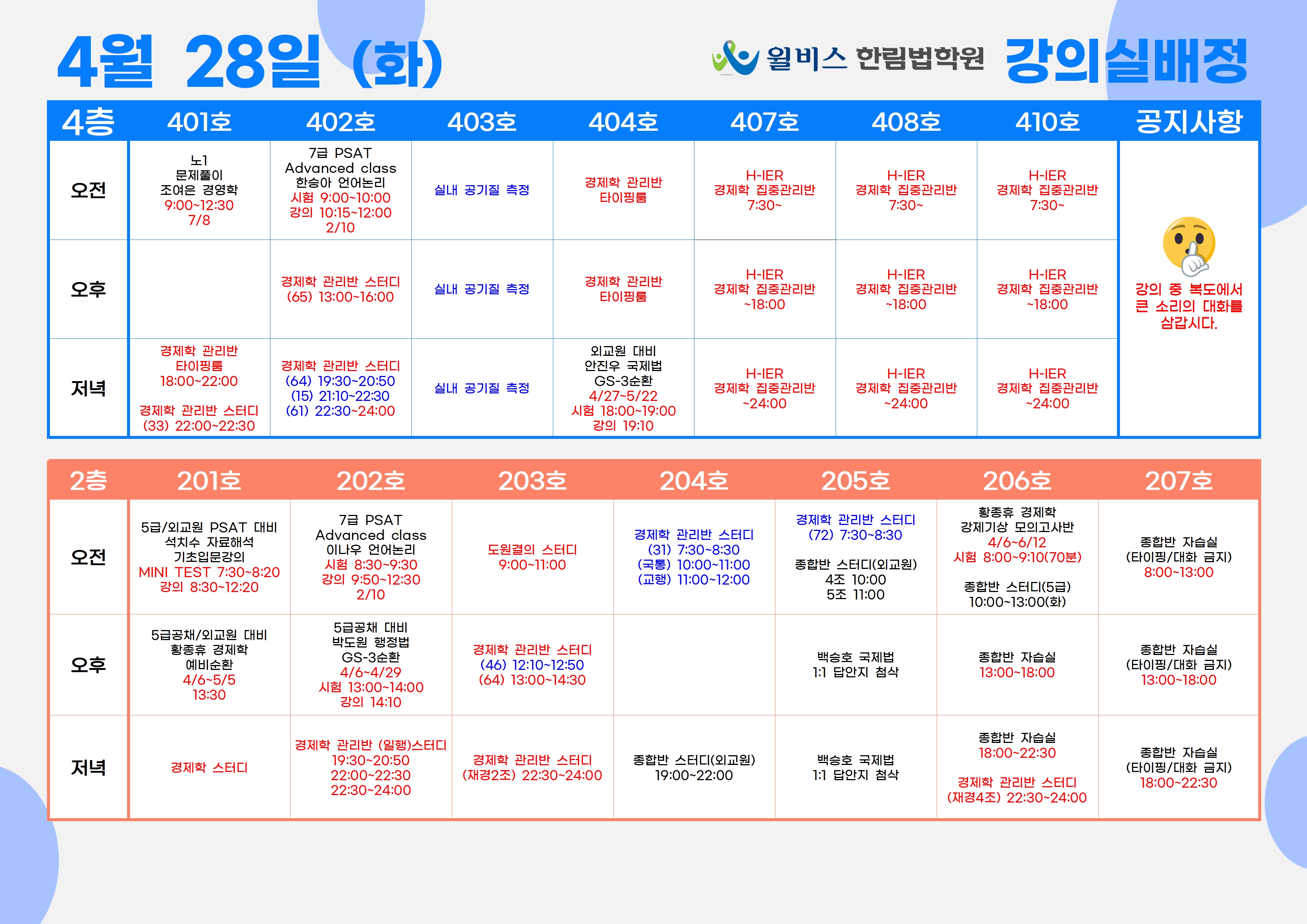 4월 28일(화) 강의실 배정표