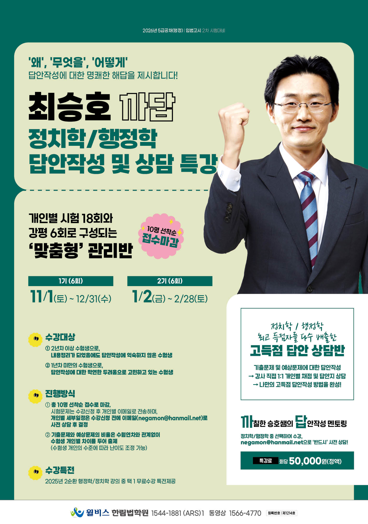 ★선착순 마감★ 최승호 까답 정치학/행정학 답안작성 및 상담 특강(11/1_토,1/2_금 개강!)