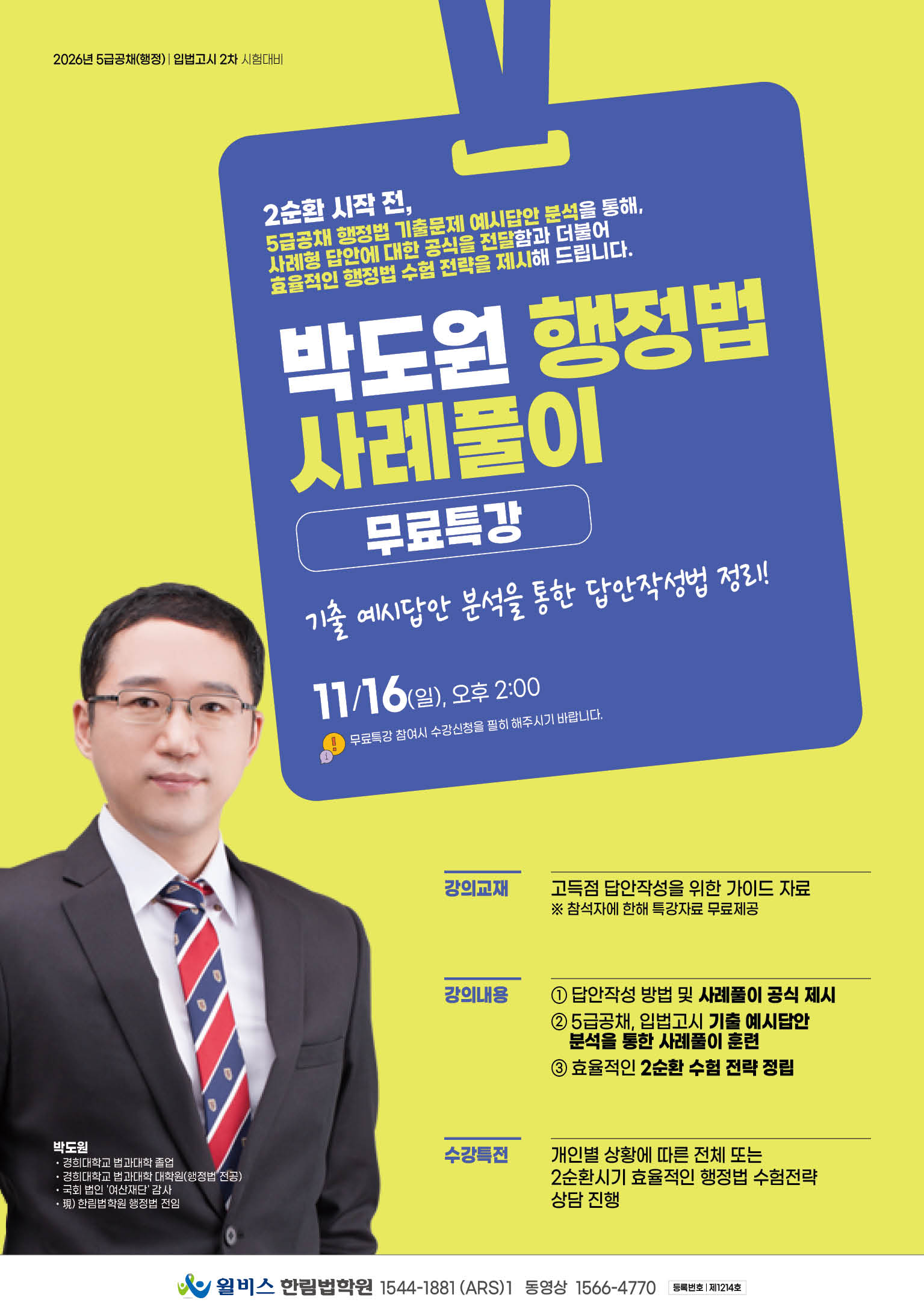 [2026년대비] 박도원 행정법 사례풀이 무료특강(11/16,일_14:00)