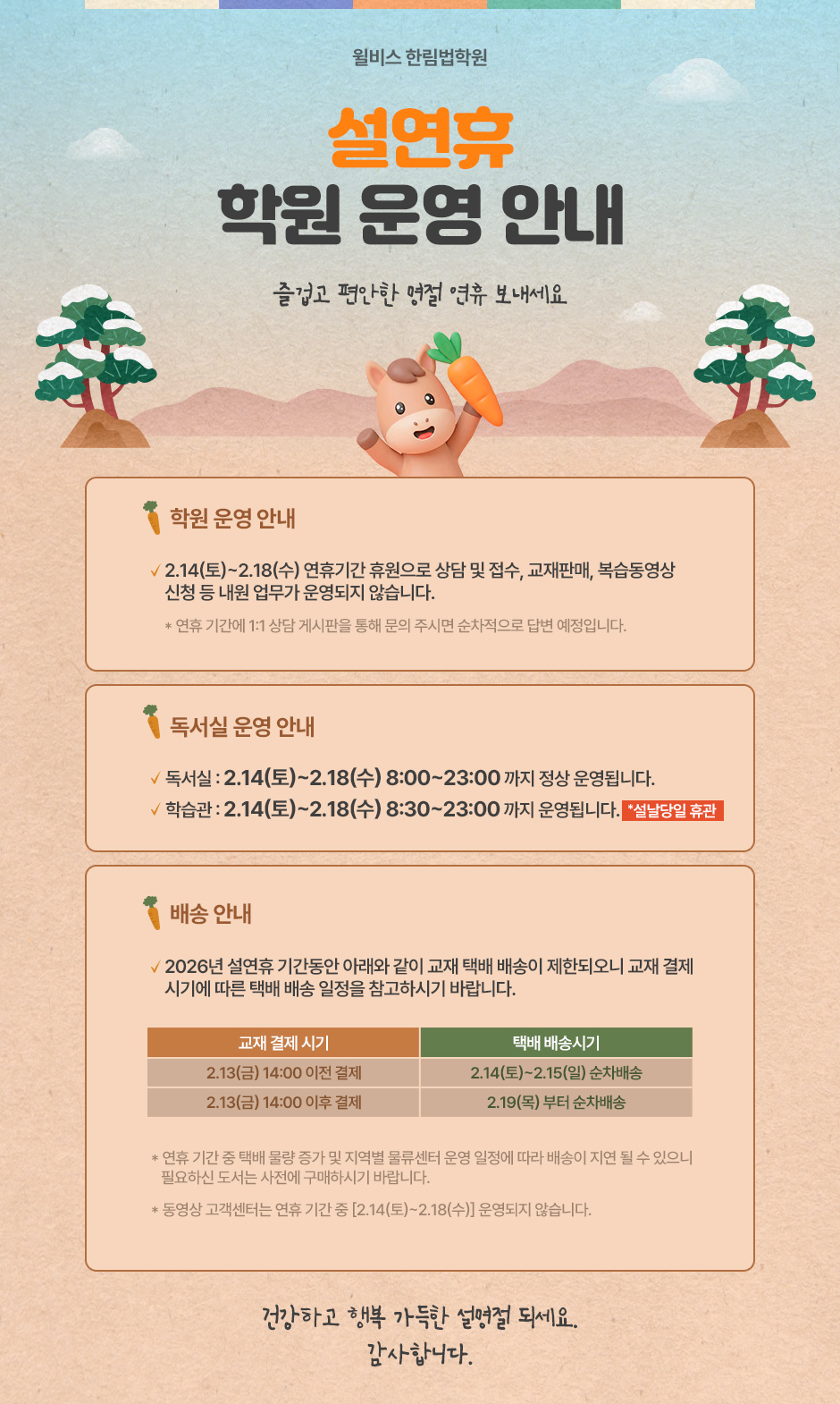 2026 한림법학원 변호사시험 설연휴 운영 및 배송안내