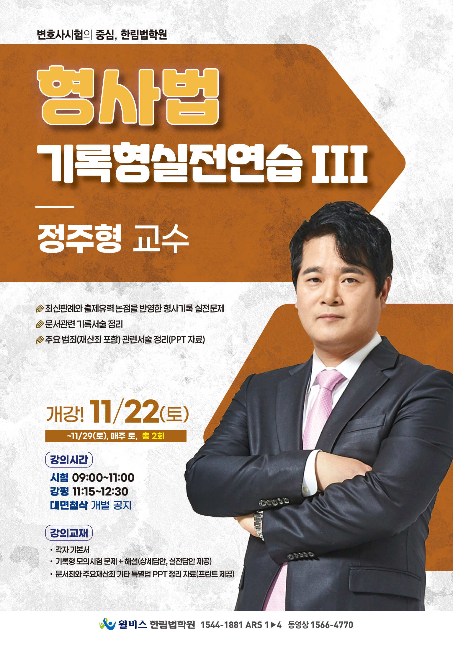 [4순환] 정주형 교수 형사법 기록형 실전연습III(11/22, 토)