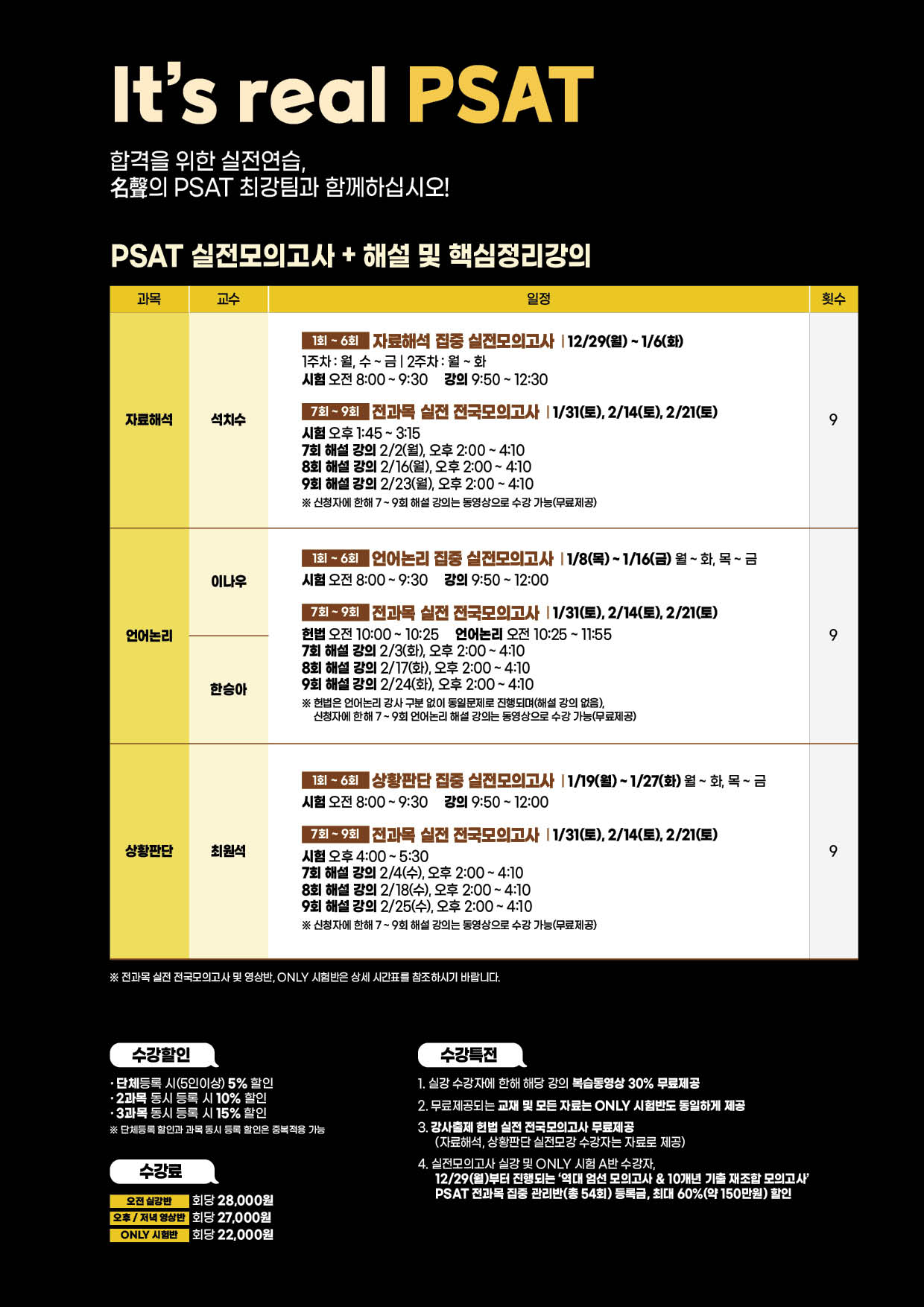 [2026년대비] PSAT 실전모의고사 + 해설 및 핵심정리 강의 | PSAT 전과목 집중 관리반