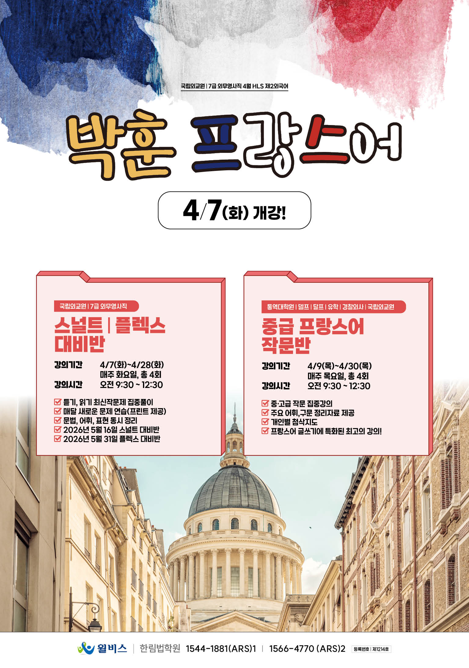 [국립외교원/7급 외무영사직] 박훈 프랑스어 2026년 4월 강의 일정
