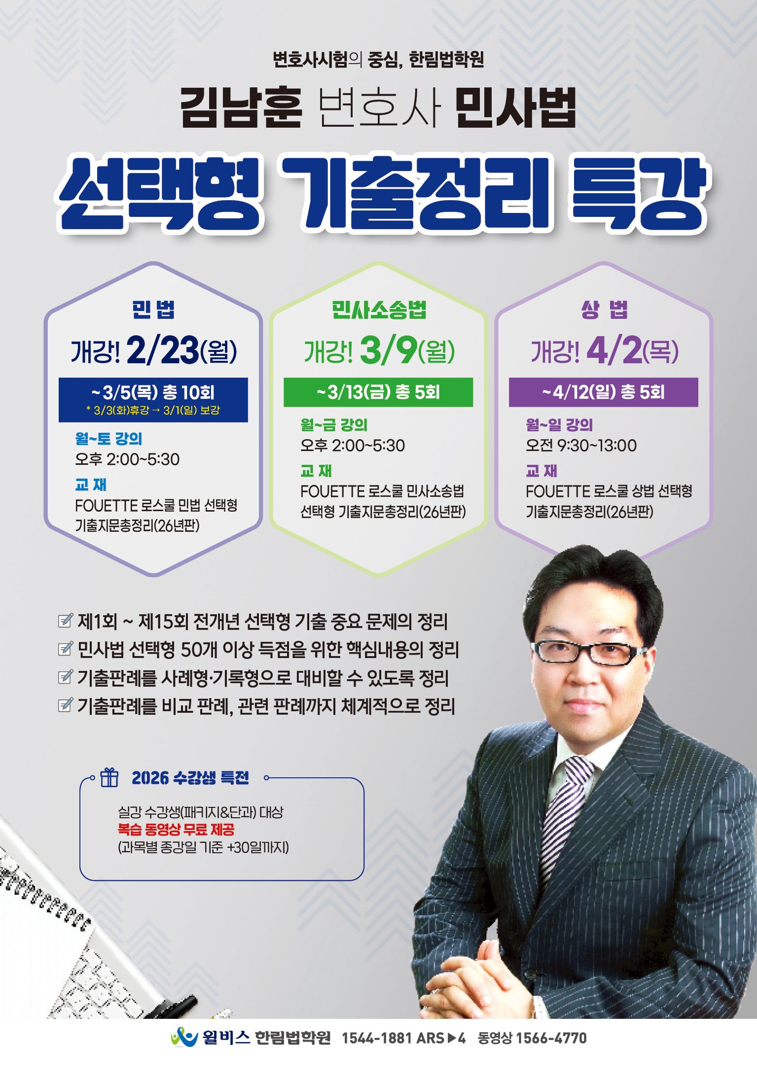 [특강] 김남훈 변호사 민사법 선택형 기출정리 특강(2/23, 월)