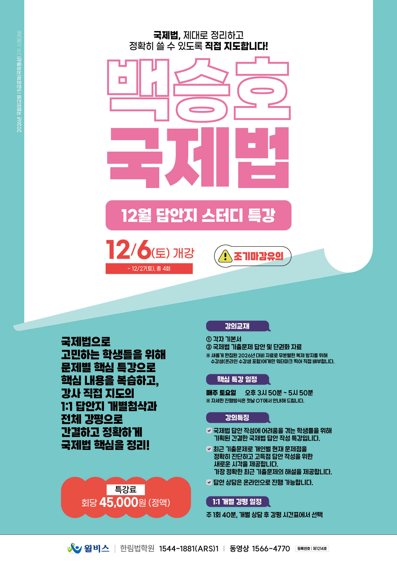 [2026년대비] 백승호 국제법 12월 답안지 스터디 특강(12/6,토_개강)