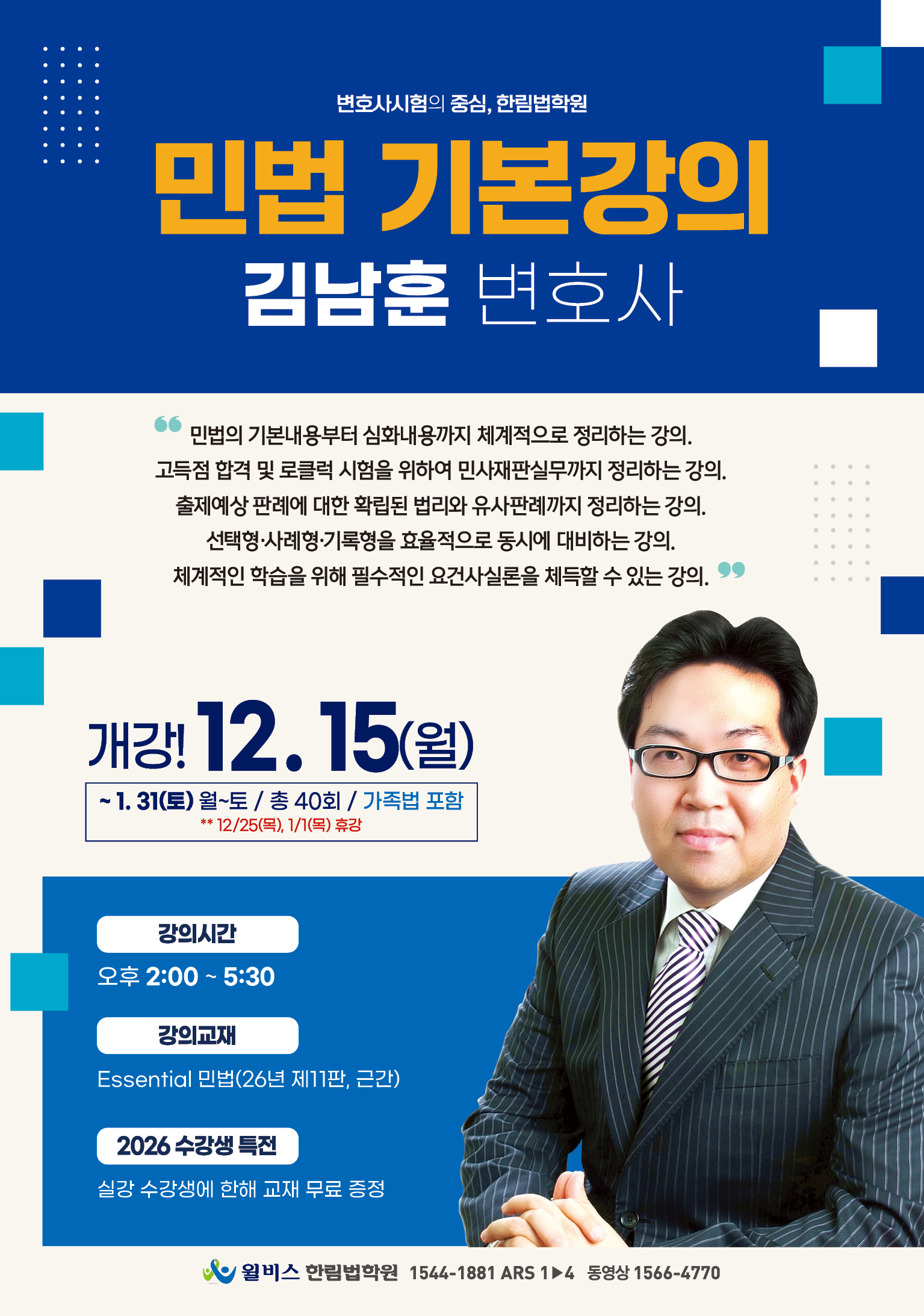 [겨울방학 선행학습] 김남훈 변호사 민법 기본강의(12/15, 월)