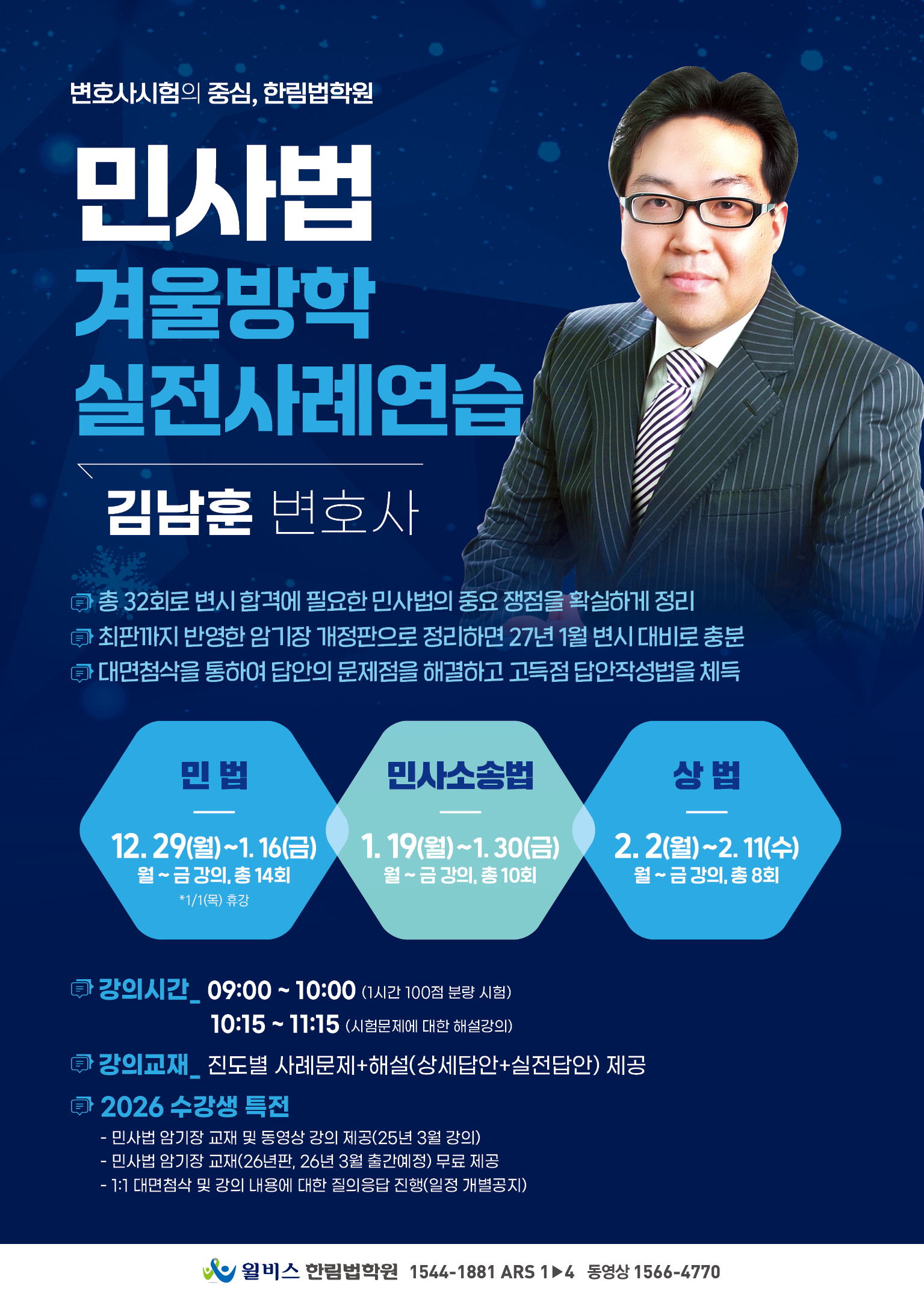 [겨울방학 특강] 김남훈 변호사 민법 실전사례연습(12/29, 월)