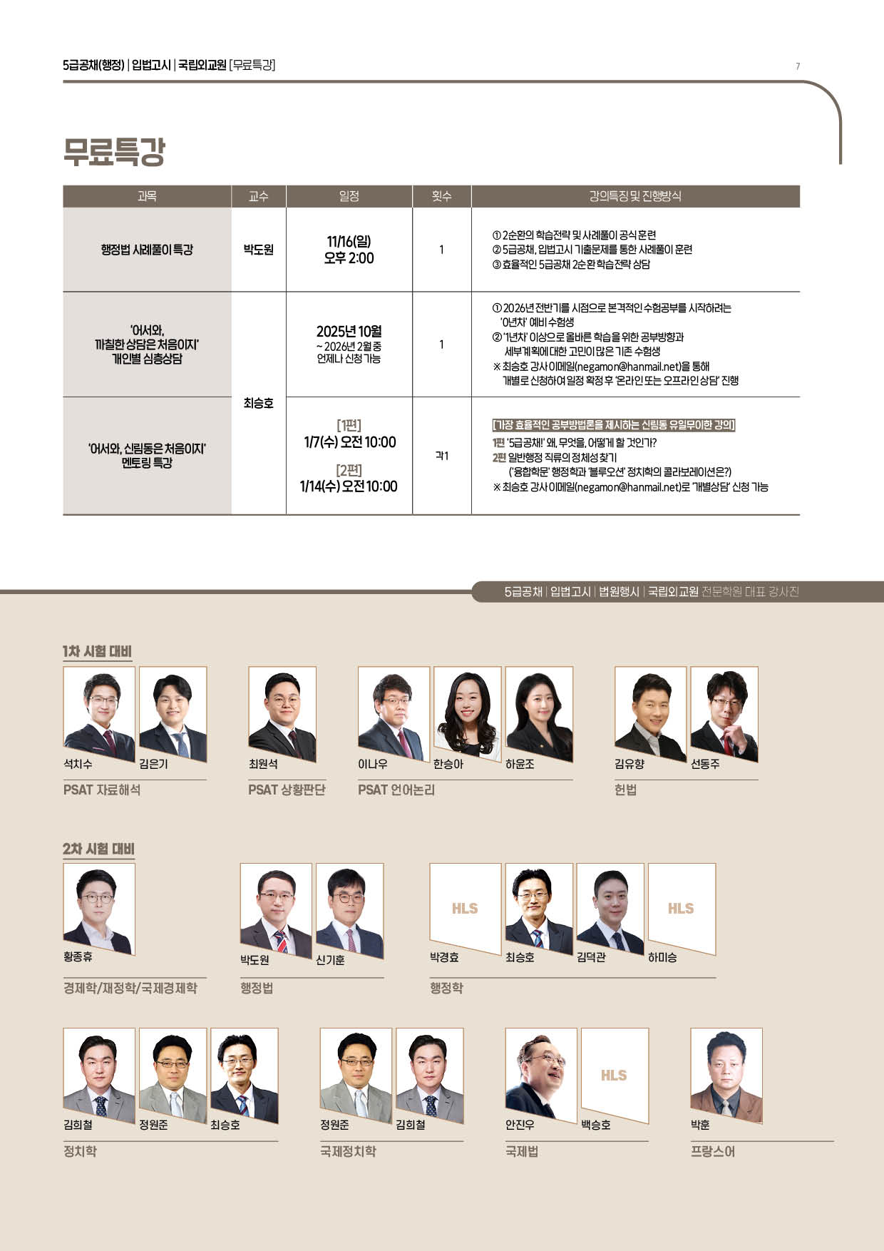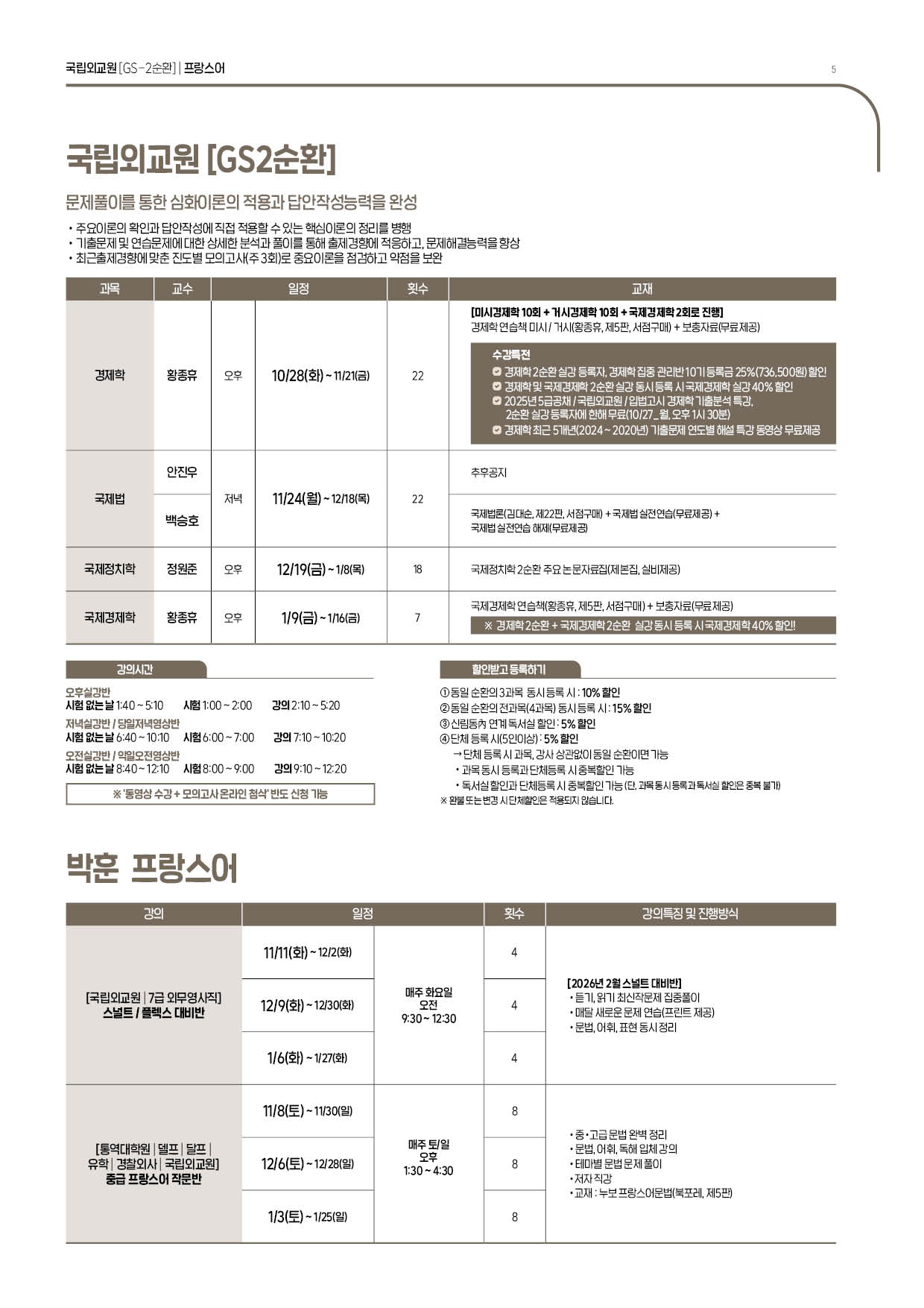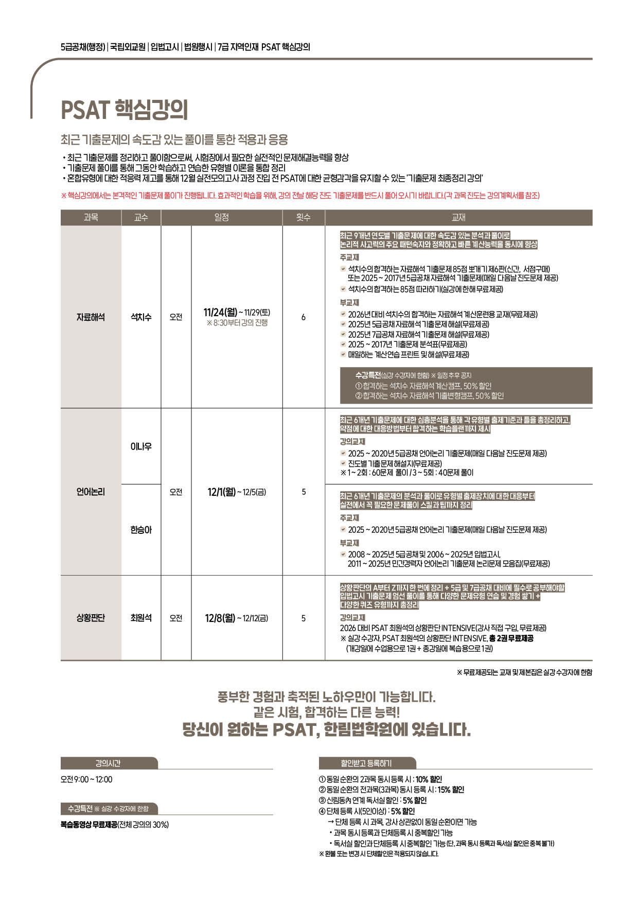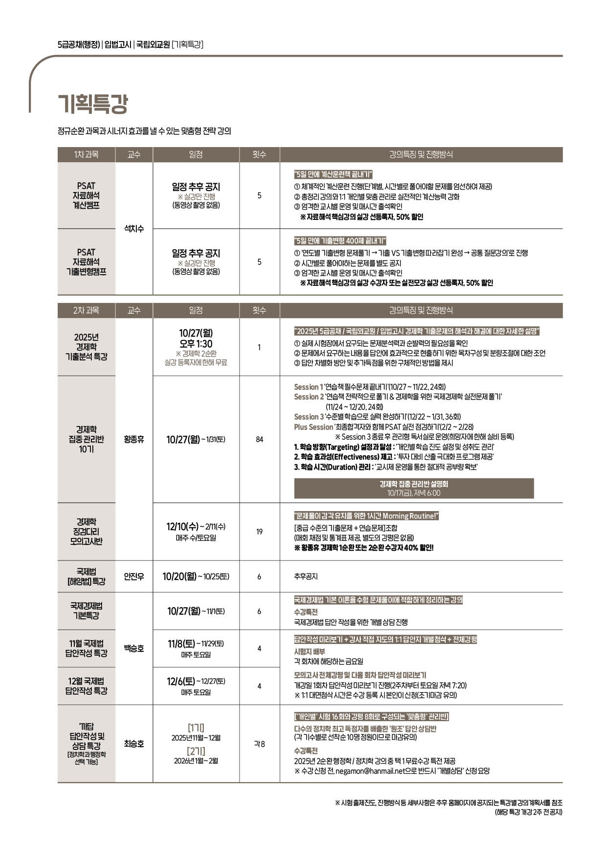 [2026년대비] PSAT l 5급공채ㅣ입법고시 l 국립외교원 25.10 ~ 26.01월 시간표(TIMETABLE)