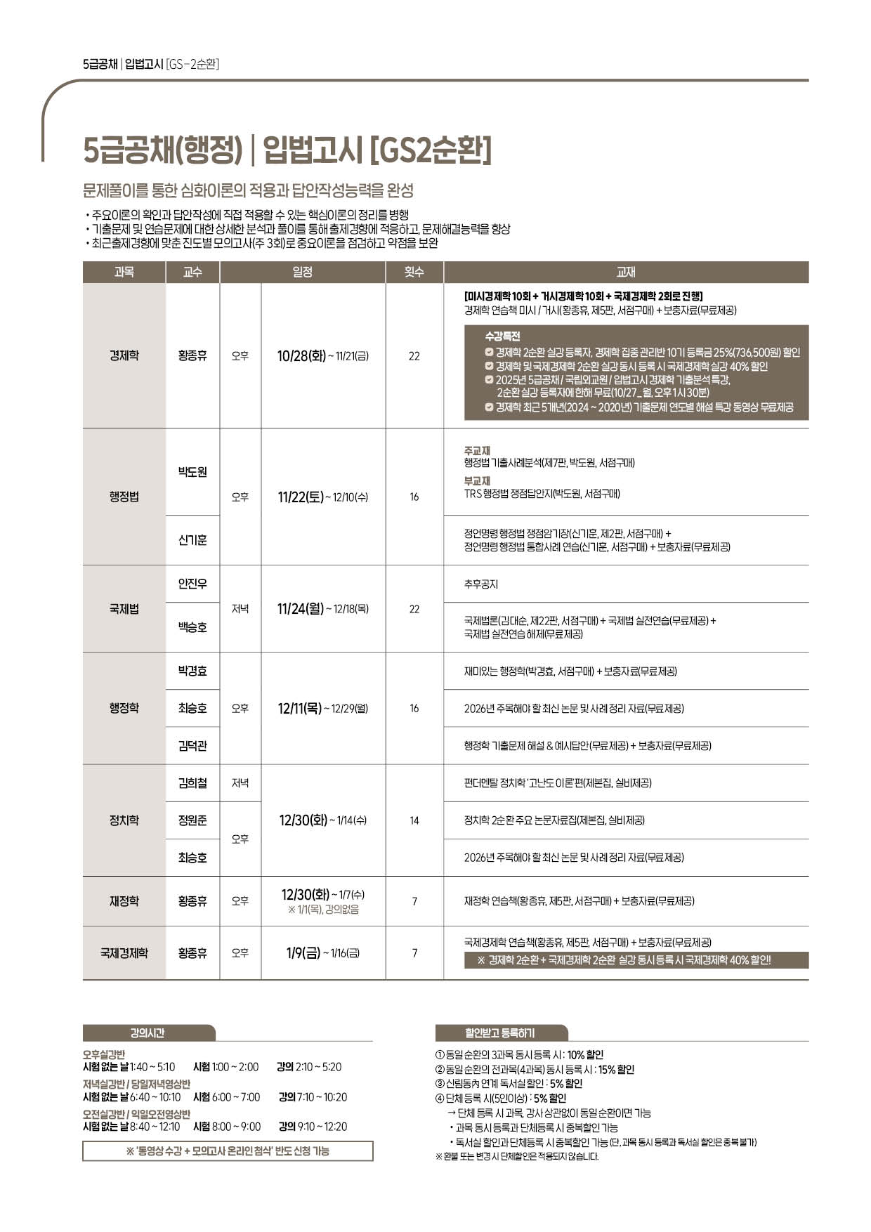 [2026년대비] PSAT l 5급공채ㅣ입법고시 l 국립외교원 25.10 ~ 26.01월 시간표(TIMETABLE)