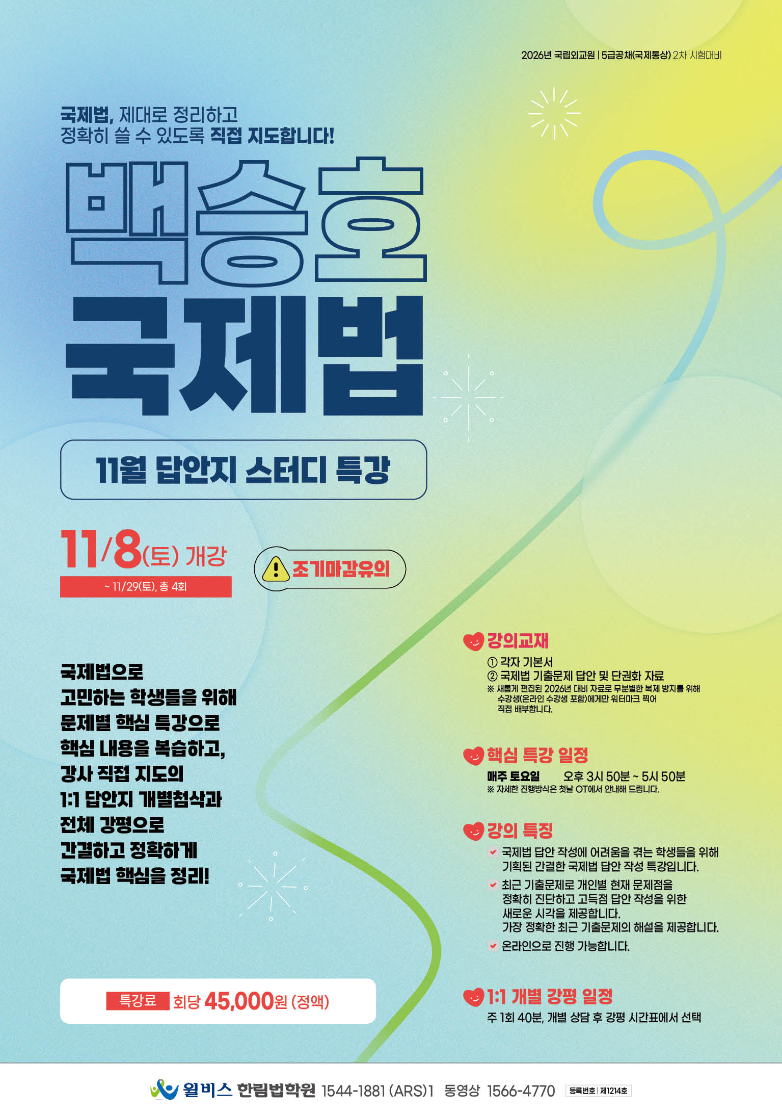 [2026년대비] 백승호 국제법 11월 답안지 스터디 특강(11/8,토_개강)