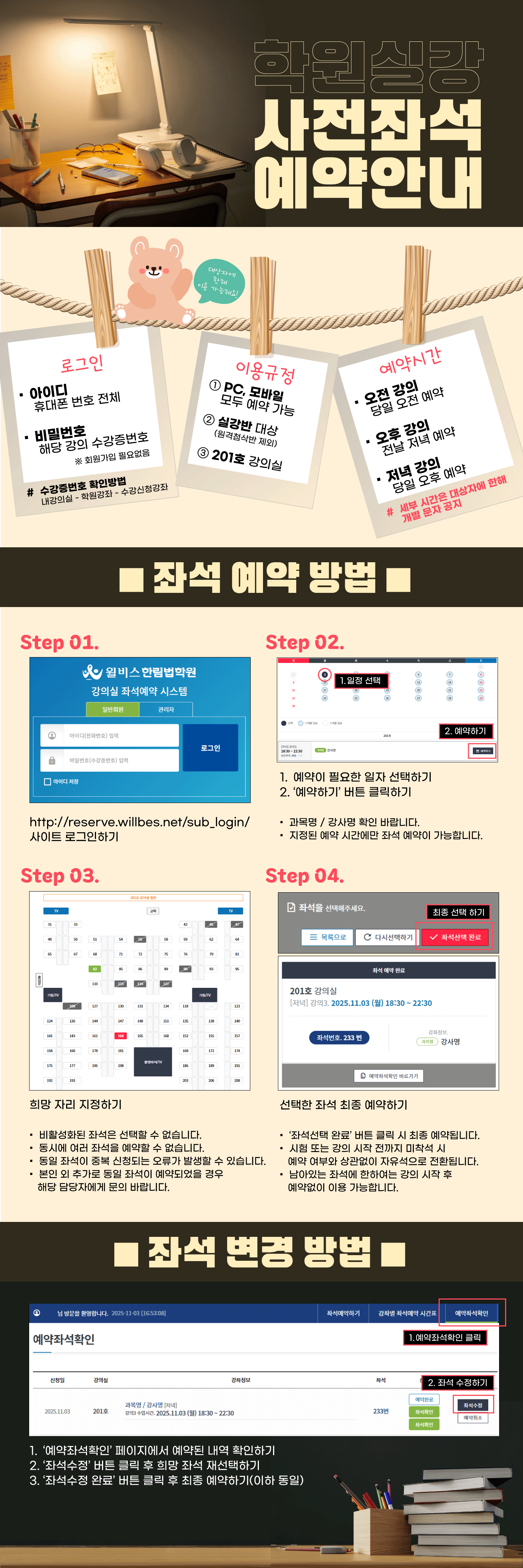 한림법학원 강의실 사전 좌석 예약방법 안내