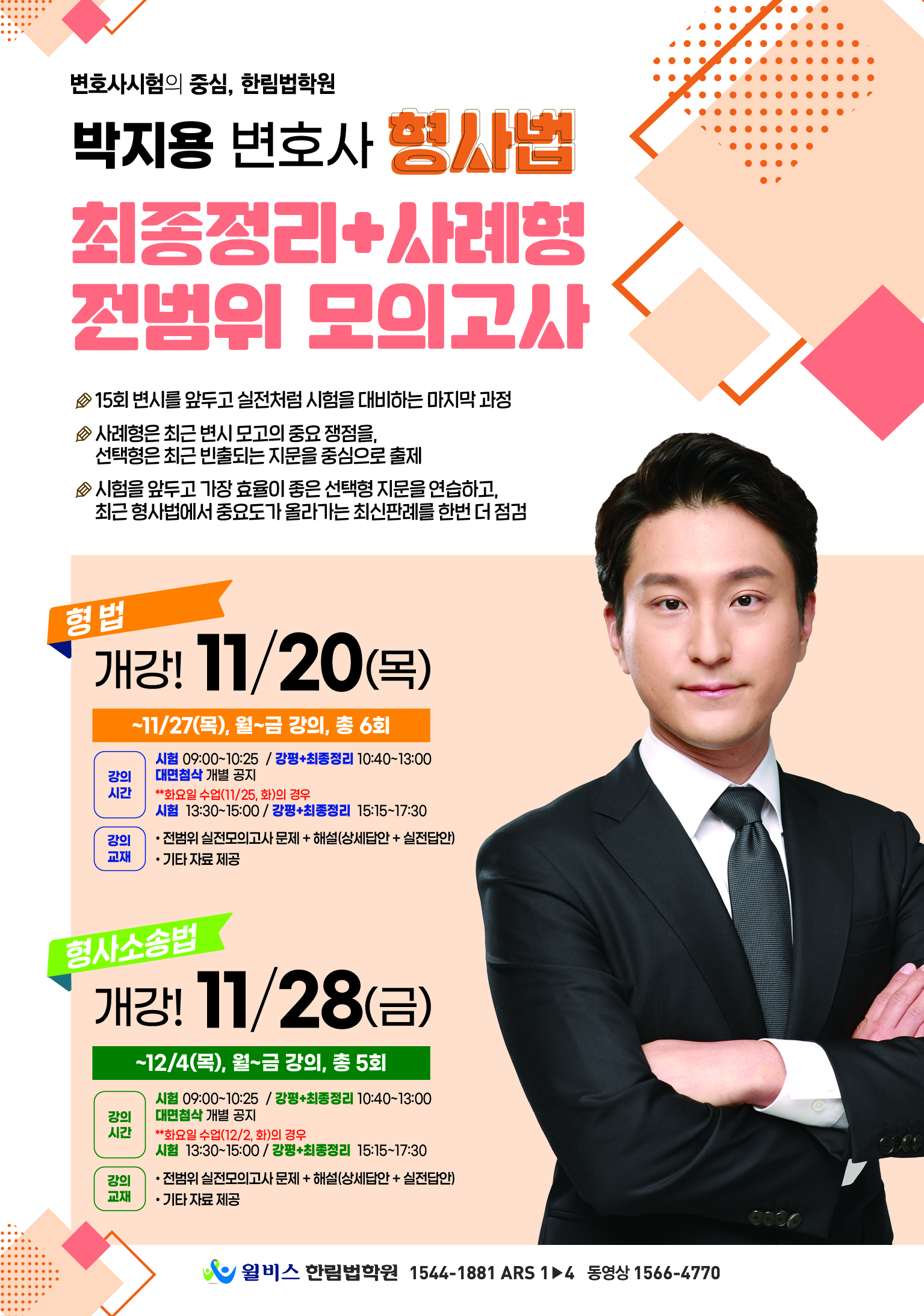 [4순환] 박지용 변호사 형사법 최종정리+사례형 전범위 모고(11/20, 목)