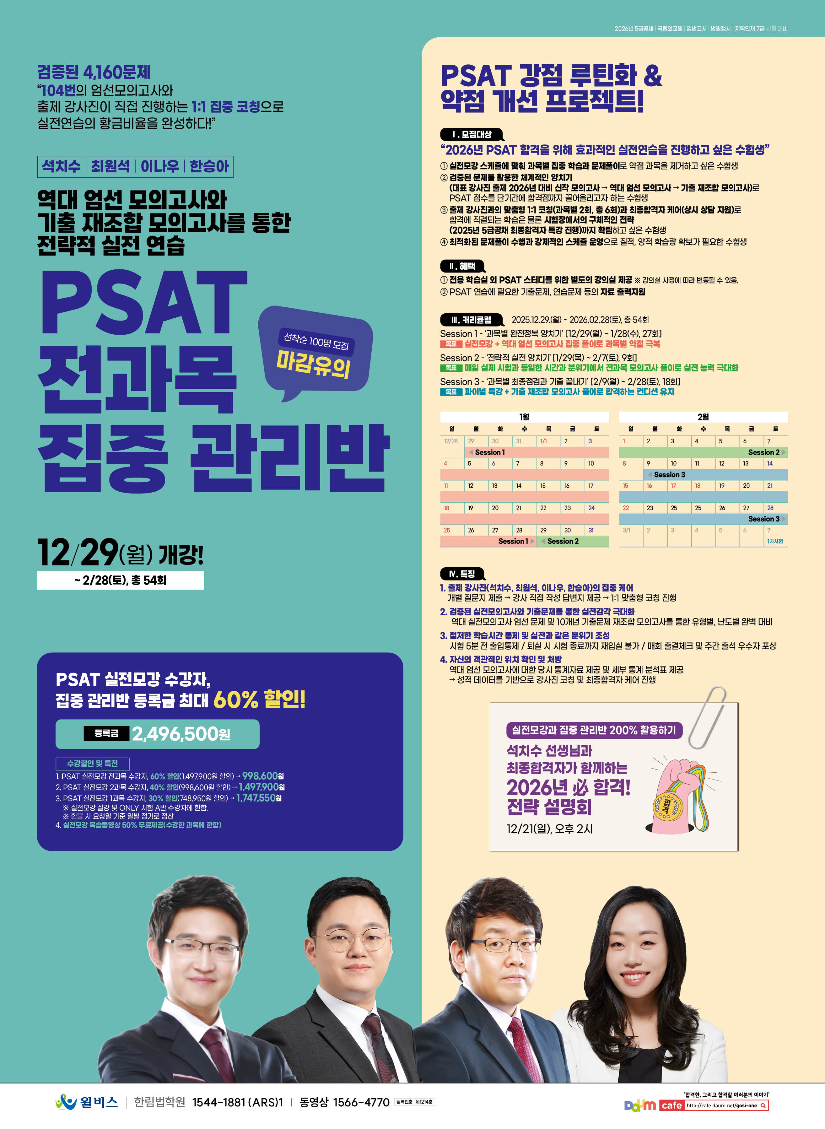 [신림] 2026 PSAT 전과목 집중 관리반(12/29,월_개강)