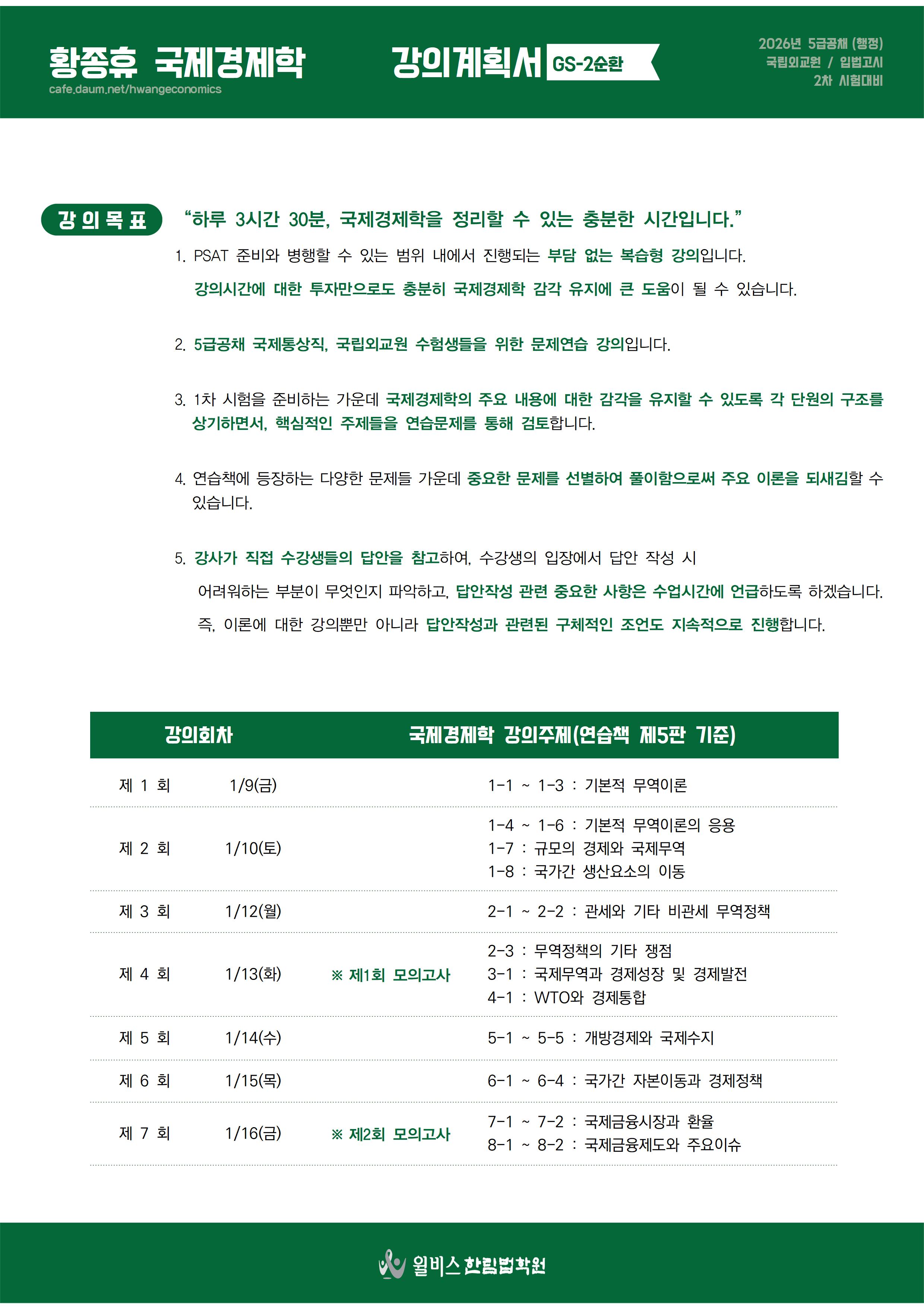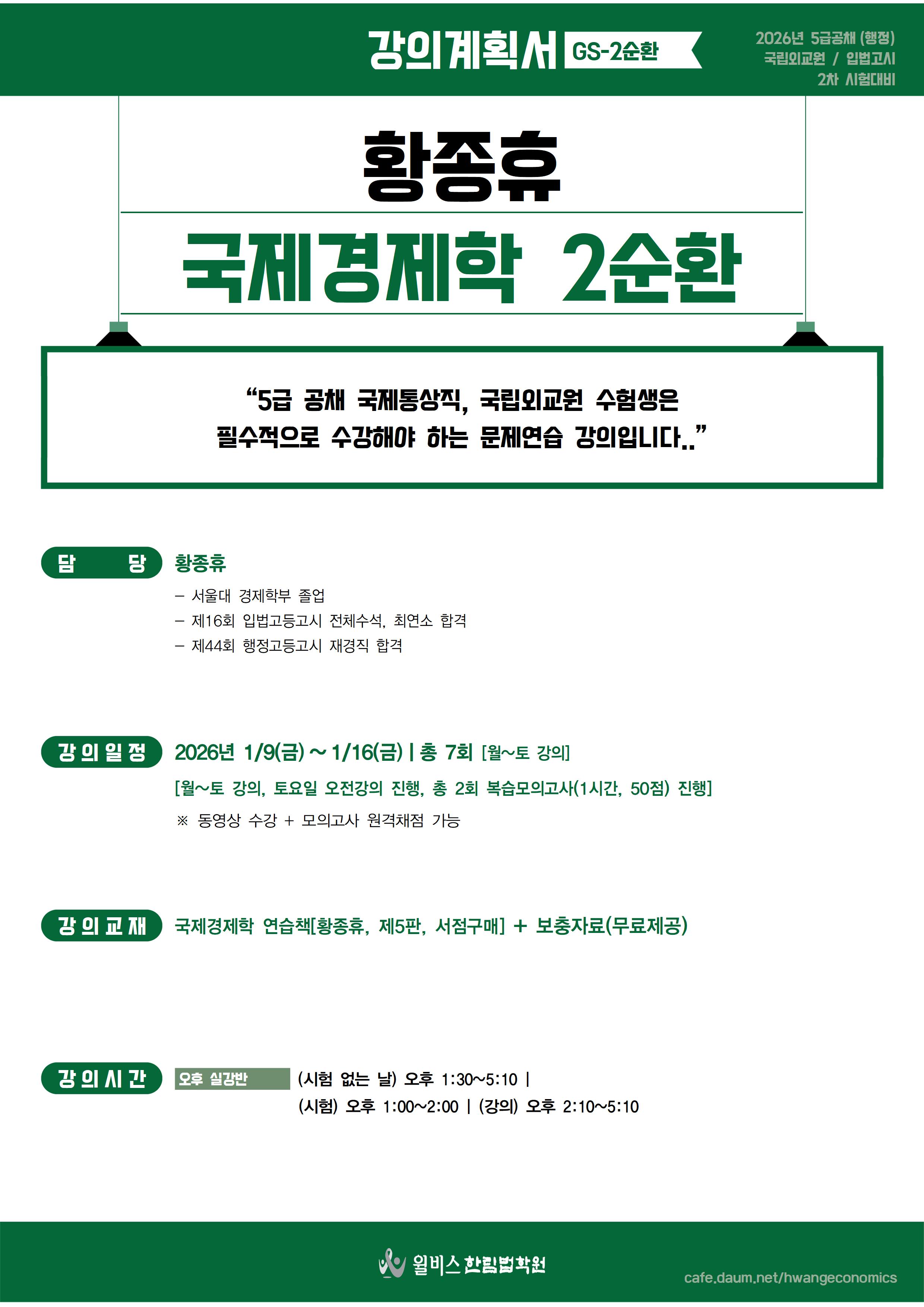 [2026년대비] 황종휴 국제경제학 GS-2순환(1/9,금_개강)