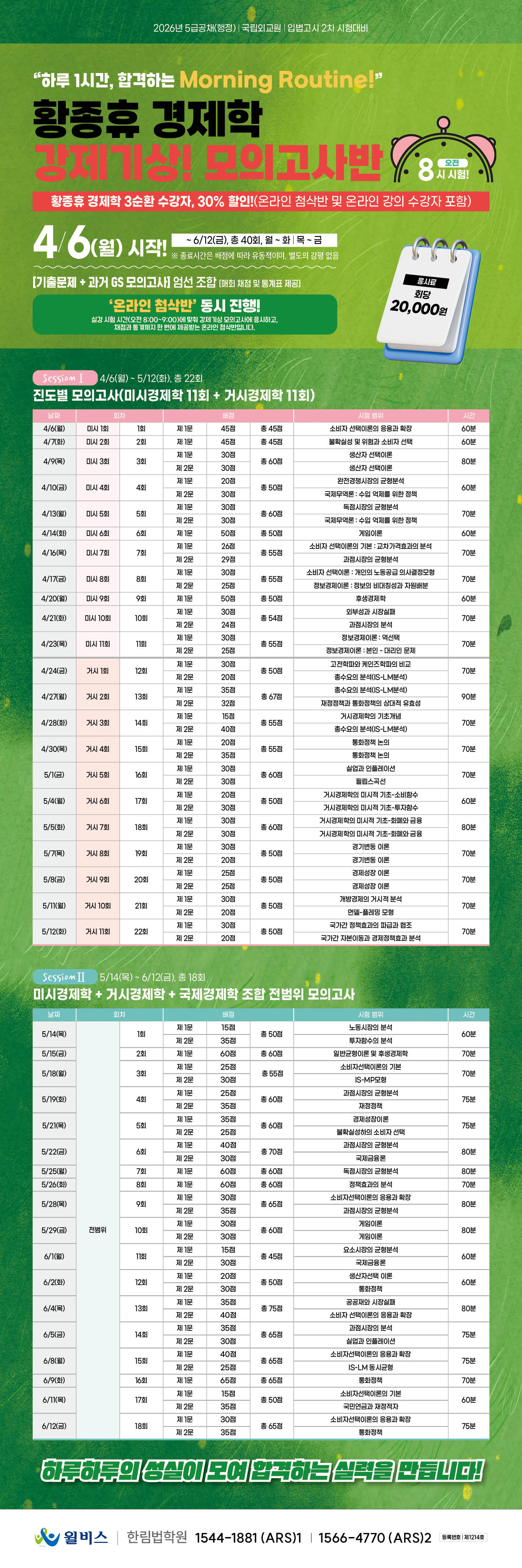 [2026년대비] 황종휴 경제학 강제기상! 모의고사반(4/6,월_START)