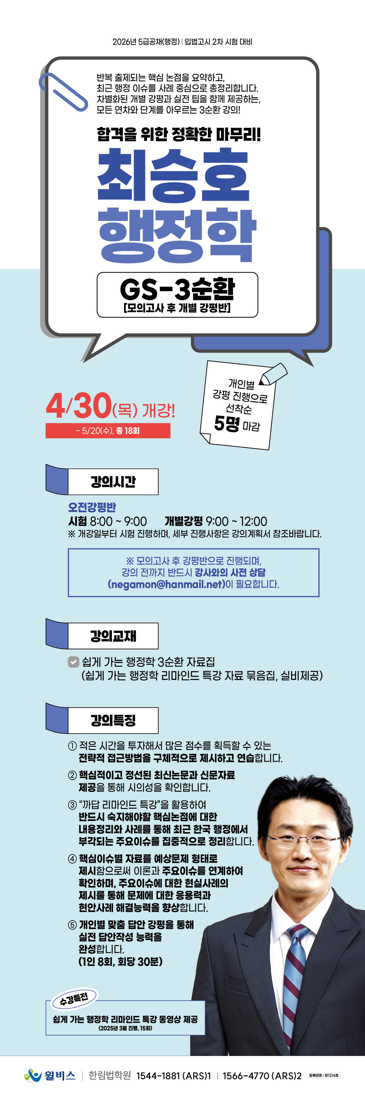 [2026년대비]★선착순 5명★ 최승호 행정학 GS-3순환[모의고사 후 개별 강평반](4/30,목_개강)