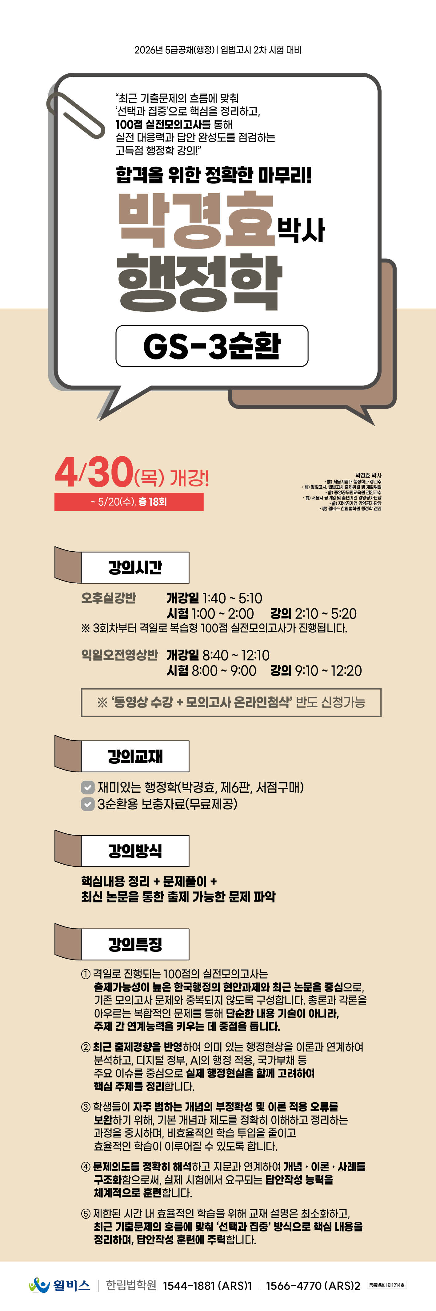 [2026년대비] 박경효 행정학 GS-3순환(4/30,목_개강)