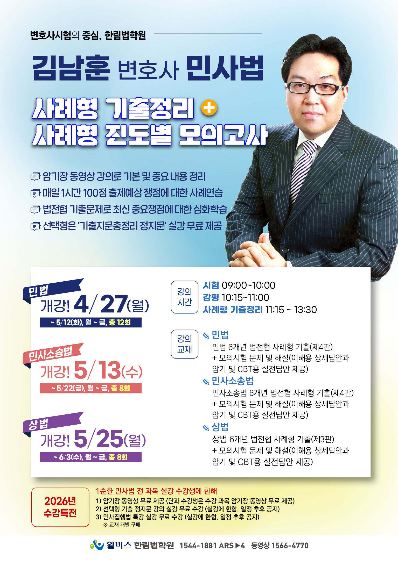 [1순환] 김남훈 변호사 민사법 사례형 기출정리+진도별 모의고사(4/27, 월)